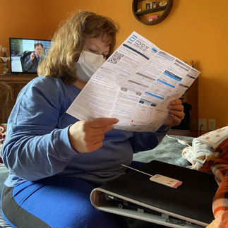 In this set of images, I tried to capture what it was like to have a COVID scare, as it was something I had never experienced before; this was the first time I was sick in over two years. This first image is simple, depicting my negative rapid test. The next is of the medicine my doctor recommended that I take, and I was spraying down everything I touched to make sure germs would not spread to my family. The third image I really like, as my mom had to wear a mask around me to take care of me, which I really wanted to emulate how lonely isolation could be, especially when I had not seen my family in a while. The next two images are the view I had of my backyard, and it was raining during my isolation, which further created a somber mood. The next image is an abstract of my blanket, trapping the viewers in. After is a portrait of my dog, the only company I had, mirroring my slumped position on the couch. With the last two images, I wanted to create a sense of sadness, as I had no energy to play my grandma's organ or take care of the plant. The plant also emulated how I was feeling.